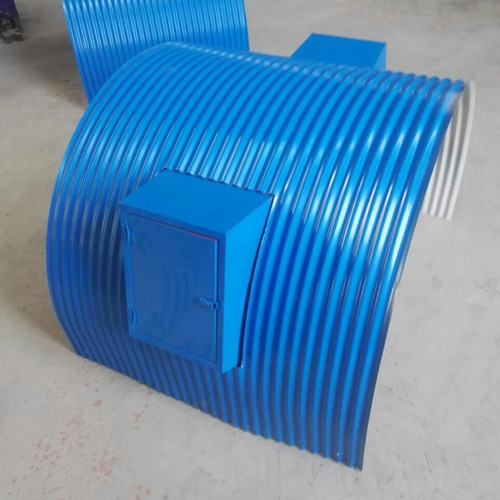 1、皮带机防雨罩分两种,固定罩和开闭式罩均彩色涂层钢板制成(颜色为蓝色),一般每8个罩位中设7个固定罩、1个开闭式罩,也可两种罩交替排列。安装时,将开闭式罩压在左右两个相邻的固定式罩上,其重合长度为一个波距或两个波距。